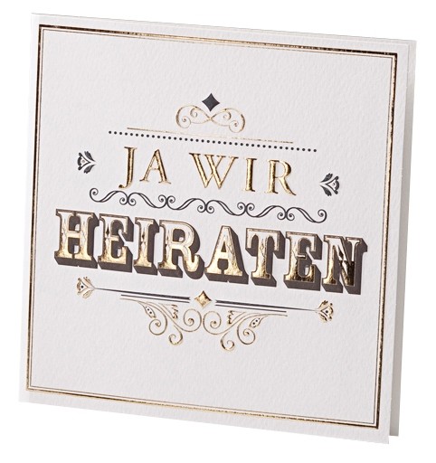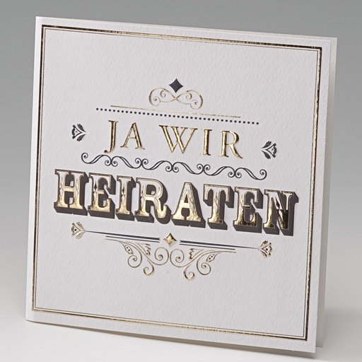 - Farbe: Weiße Hochzeitskarte mit gold-schwarzen Prägungen