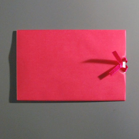 Die Innenkarte wird mit einem Satinband nach rechts aus der Hülle gezogen.